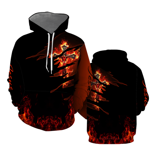 Christian Fire Cross Pullover Hoodies