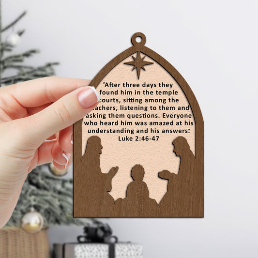 Layered Nativity Scene with Bible Verse Wooden Ornament