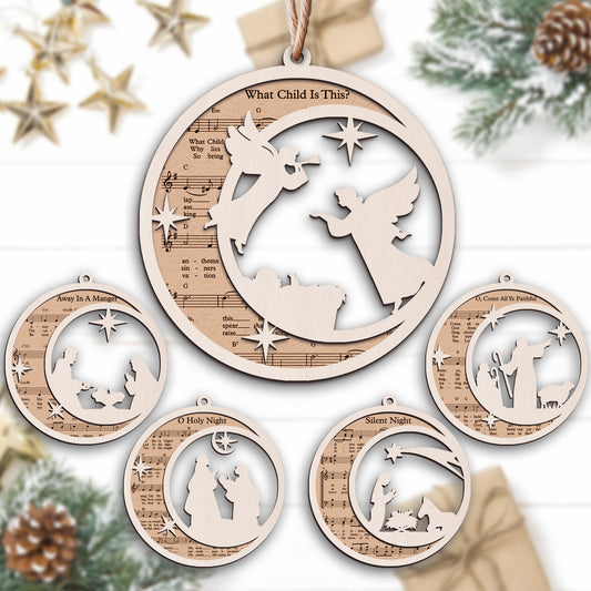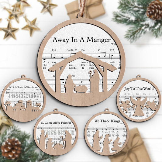 Christian Songs Layered Wooden Ornament - Set of 5