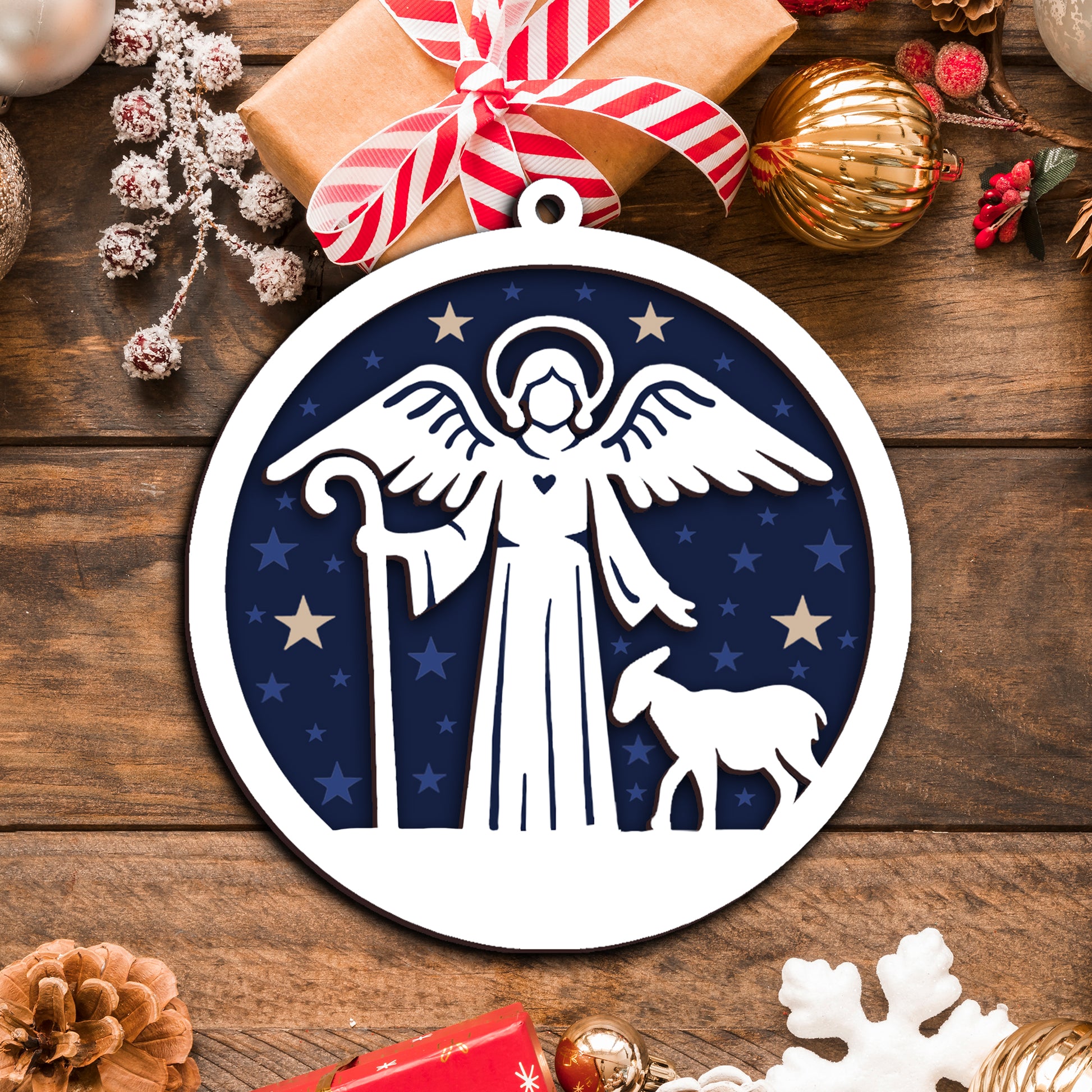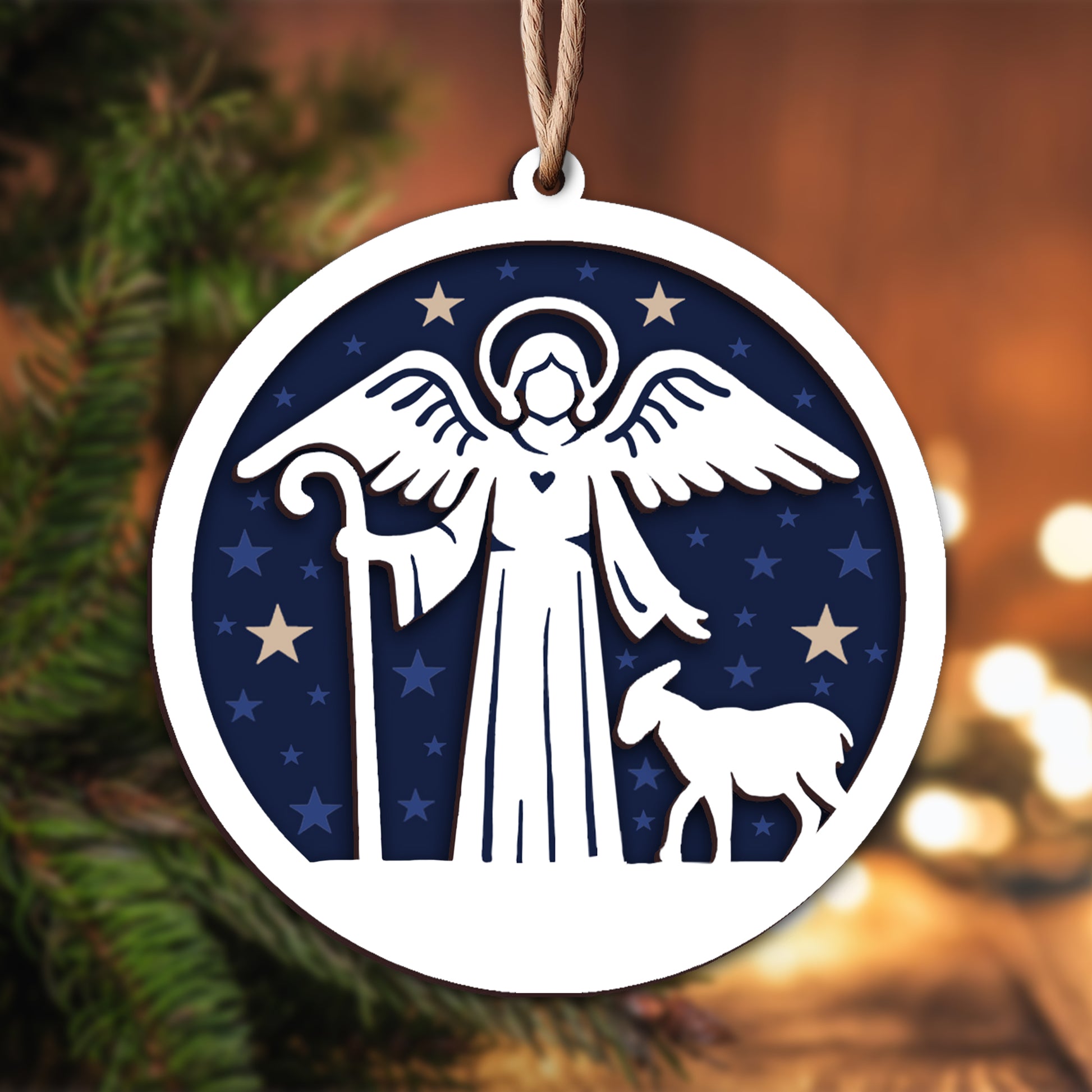 Shepherd with Lamb and Starry Night Layered Wooden Ornament - Celebrate the season with this beautifully crafted Round Layered Wooden Ornament. Made from premium wood, each piece features delicate layered details inspired by traditional Christmas carols, adding a rustic yet elegant touch to your holiday décor.